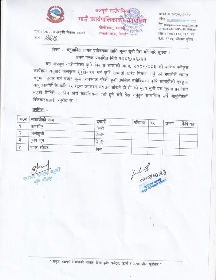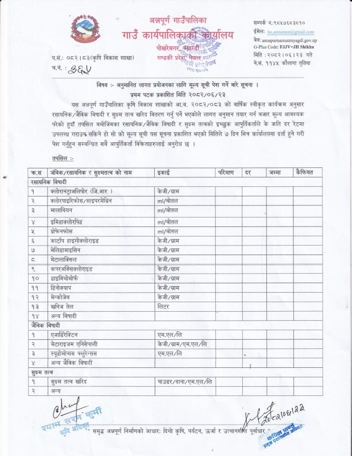 अन्नपुर्ण गाऊपालिकाको कार्यलयको सुचना