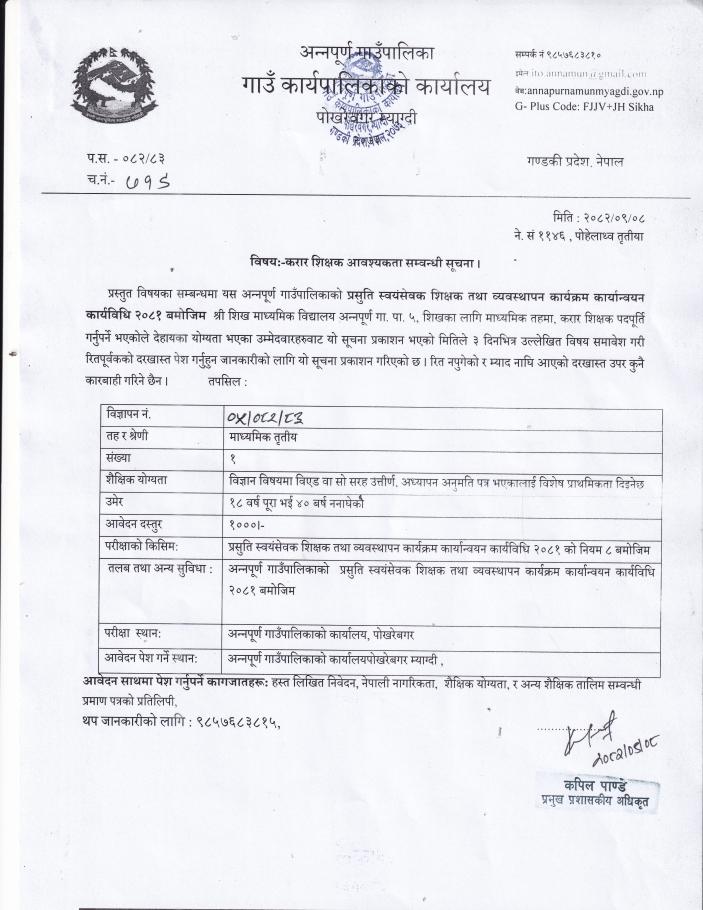 अन्नपुर्ण गाउँपालिका ०१ दाेबाकाे लागि कार्यालय सहयाेगि पदकाे अन्तर्वाता सम्बन्धि सुचना ।
