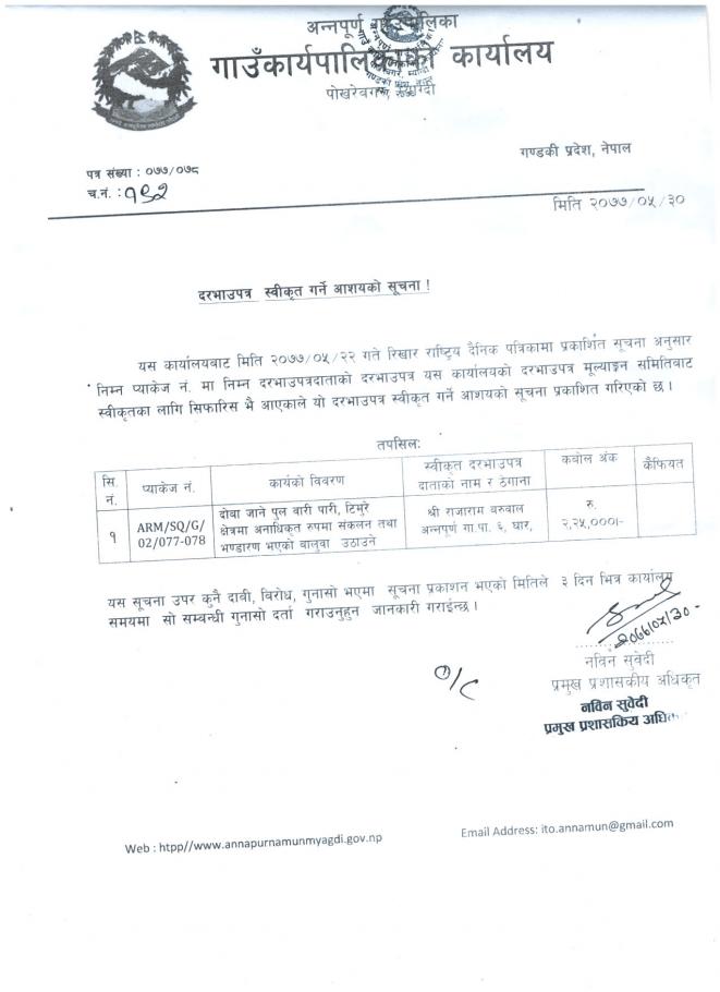 अन्नपुर्ण गाऊपालिकाको कार्यलयको सुचना