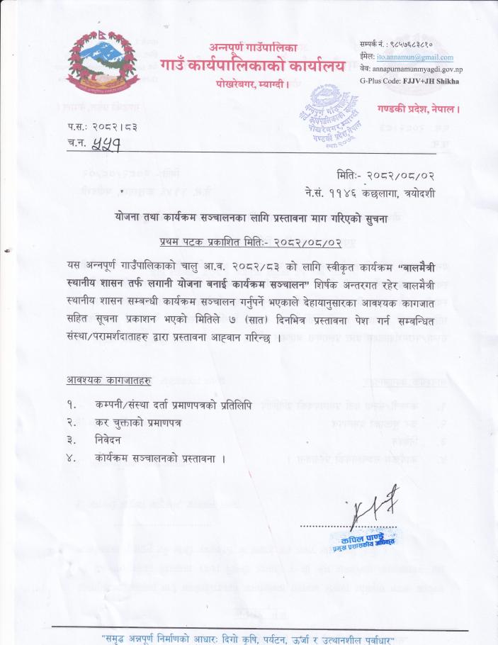 अन्नपुर्ण गाऊपालिकाको कार्यलयको सुचना