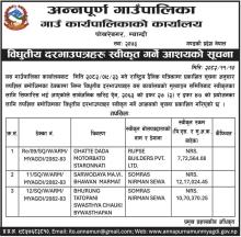 विद्युतीय दरभाउपत्रहरु स्वीकृत गर्ने आशयको सूचना। Ghatte Dada Motorbato Staronnati, Sarwodaya Ma. Vi. Bhawan Marmat, Bhurung Tatopani Swasthya Chuki Bywasthapan.