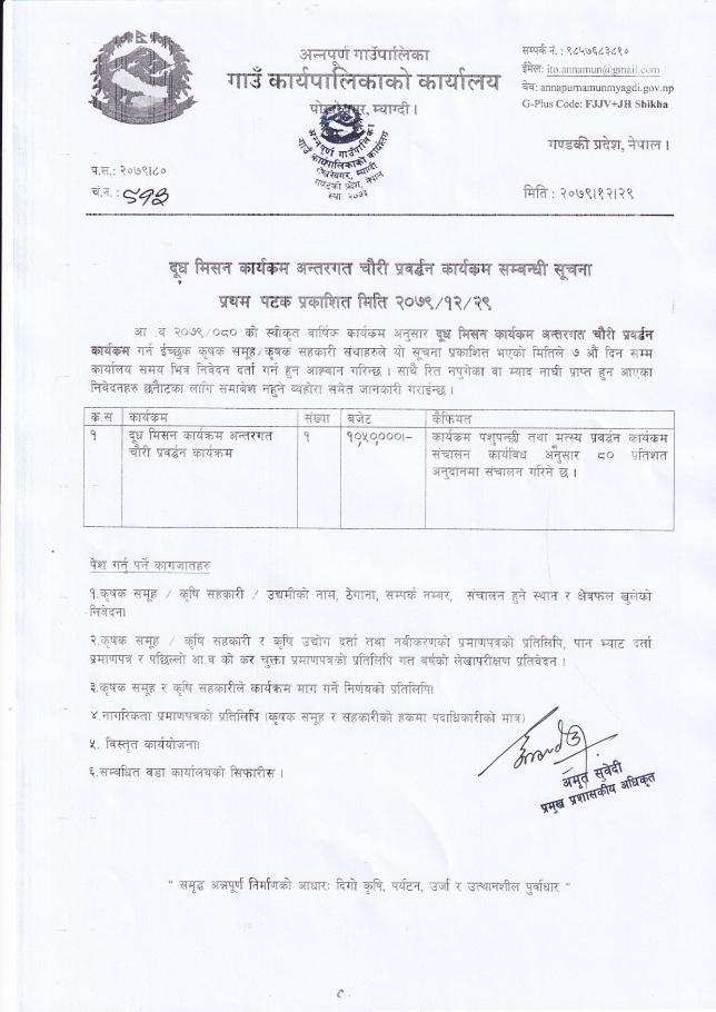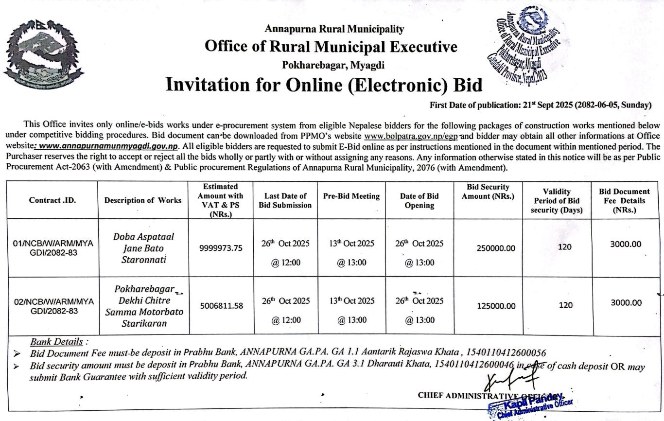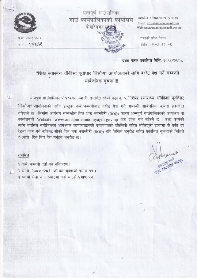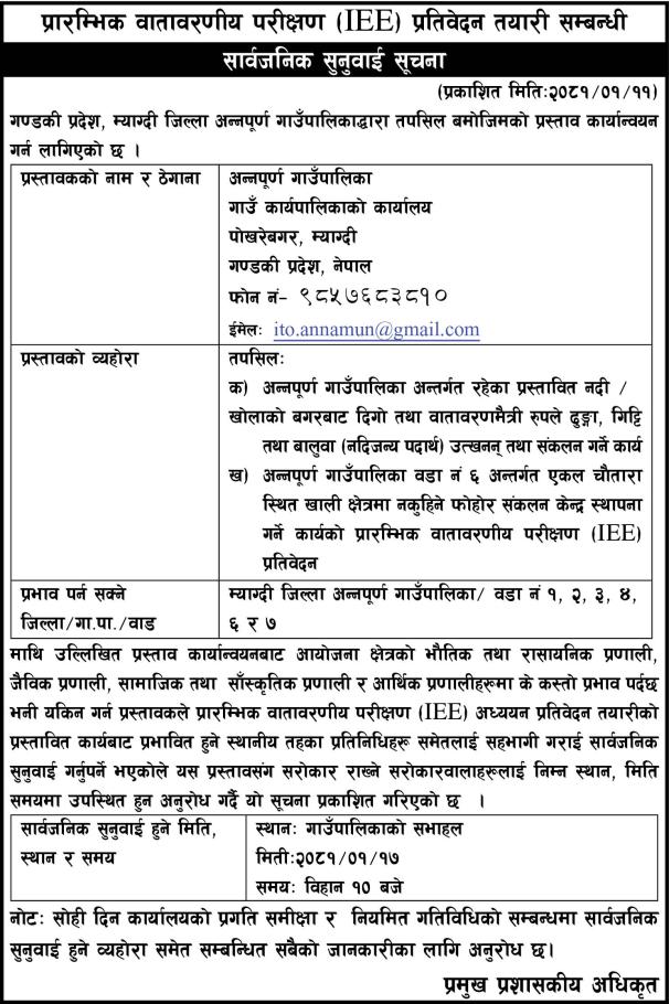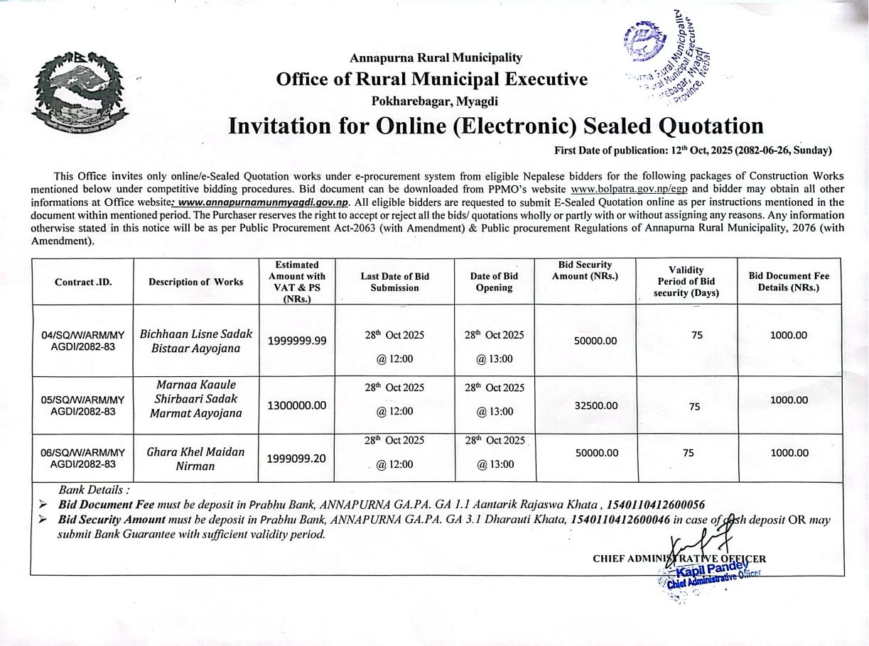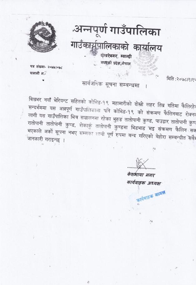 अन्नपूर्ण गाउँपालिका सार्वजनिक-निजी साझेदारी सम्बन्धी ऐन, २०७६ को दफा १७ बमोजिम प्राकृतिक तातोपानी पाउद्वार कुण्डलाई व्यवस्थित बनाउनका लागि डिजाइन, निर्माण सञ्चालन र हस्तान्तरण गर्ने विधि मार्फत सार्वजनिक निजी साझेदारीमा सञ्चालनको लागि