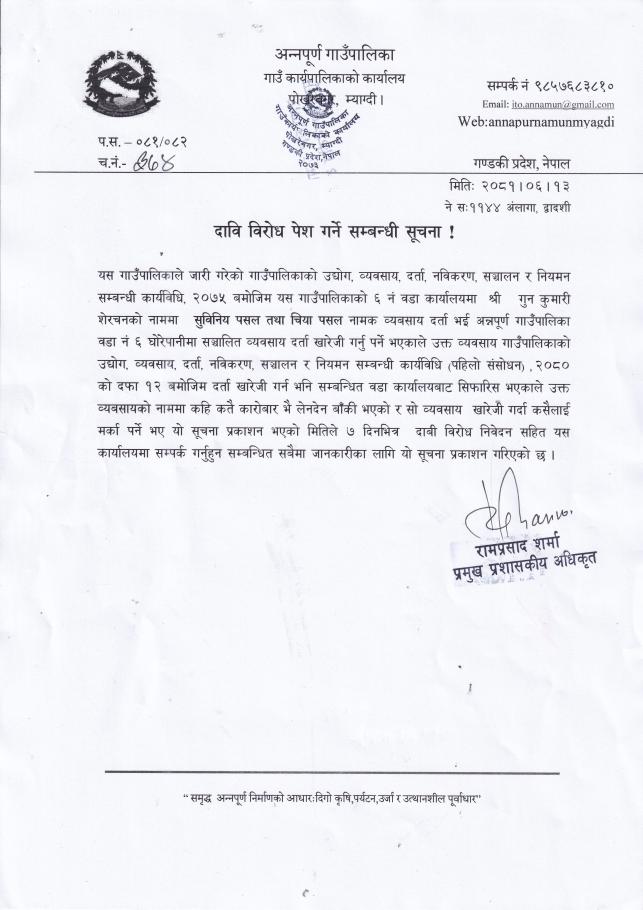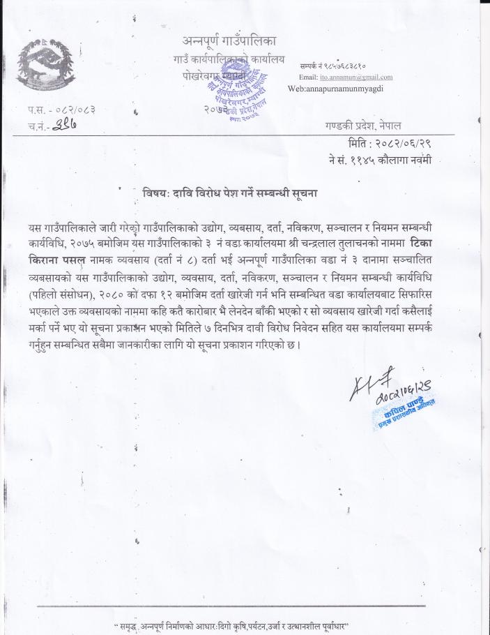 ( नोट : २०८१।०२।२९ को रिखार दैनिक मा प्रथम पटक प्रकाशित मिति २०८१।०२।२९ हुनुपर्नेमा अन्यथा हुन गएकोमा सच्चाईएको व्यहोरा जानकारीको लागि अनुरोध छ।)