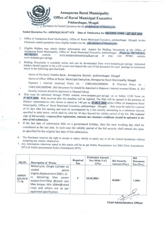 मनाशयपत्र आह्वान सम्बन्धी सूचना (मनाशयपत्र आह्वान नं. ०१/सानिसा/०८०/८१)