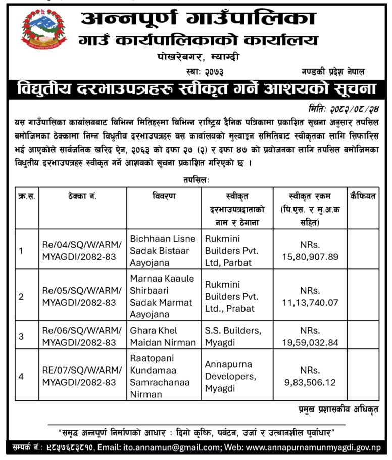 अन्नपुर्ण गाऊपालिकाको कार्यलयको सुचना